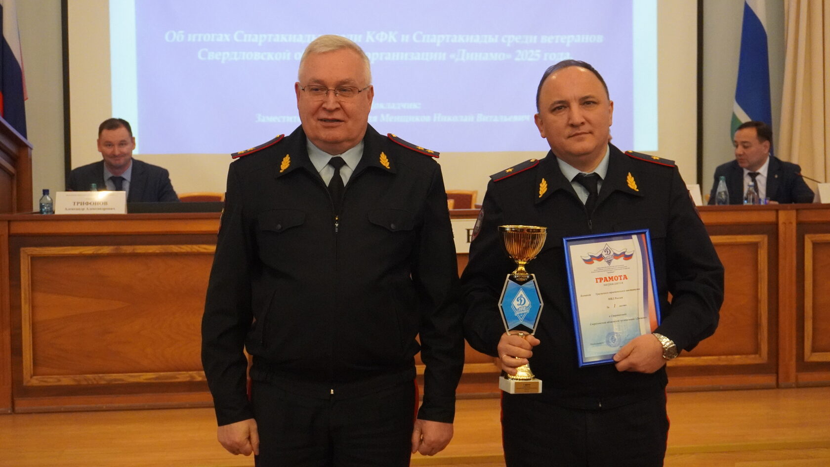 В завершение работы Президиума состоялась церемония награждения спортсменов и ветеранов Свердловской областной организации Общества «Динамо» и руководителей коллективов, занявших призовые места в Спартакиаде Свердловской областной организации Общества «Динамо».